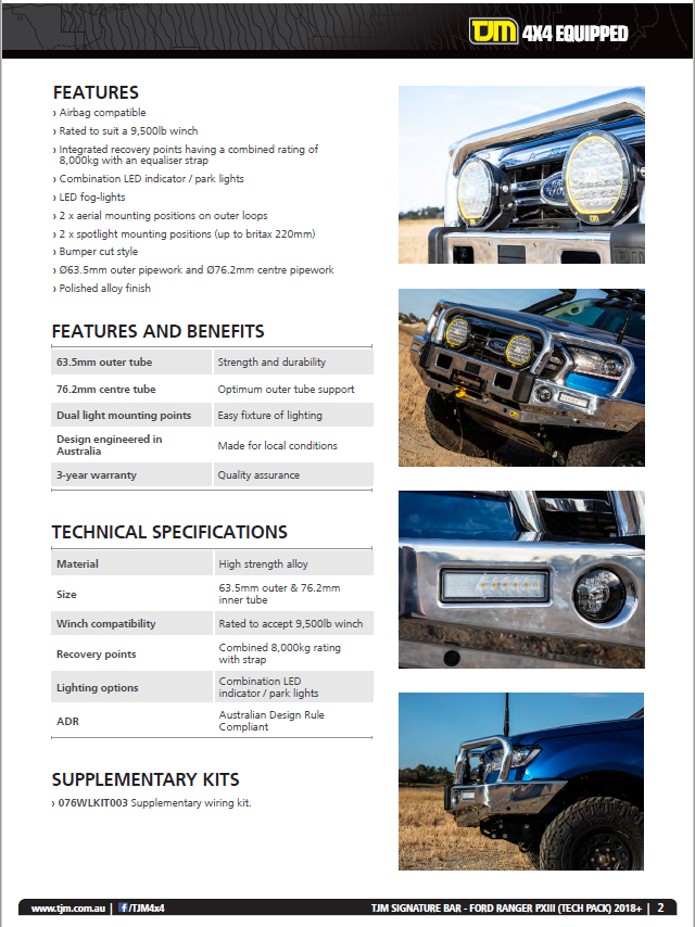 Signature Bar Ford Ranger PXIII 2018+ (tech pack)