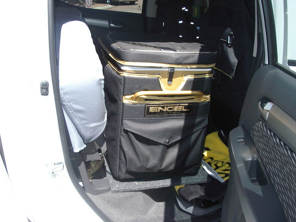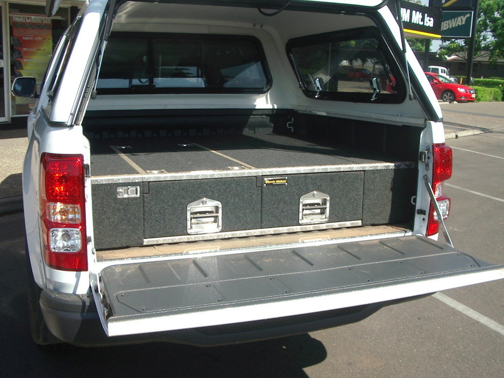 With Touring and remote area travel in mind, a colour coded smooth finish canopy with built in roof racks and Black Widow drawers were fitted. The need for as much load area as possible lead us to mounting the 50th anniversary Engel to the floor behind the driver’s seat, the Holden Colorado has a 60/40 folding back seat with the seat base also folding up making this an ideal place to fit the fridge. A TJM Yulara roof top tent and Winton awning quickly followed making for a fast camp anywhere in the bush.