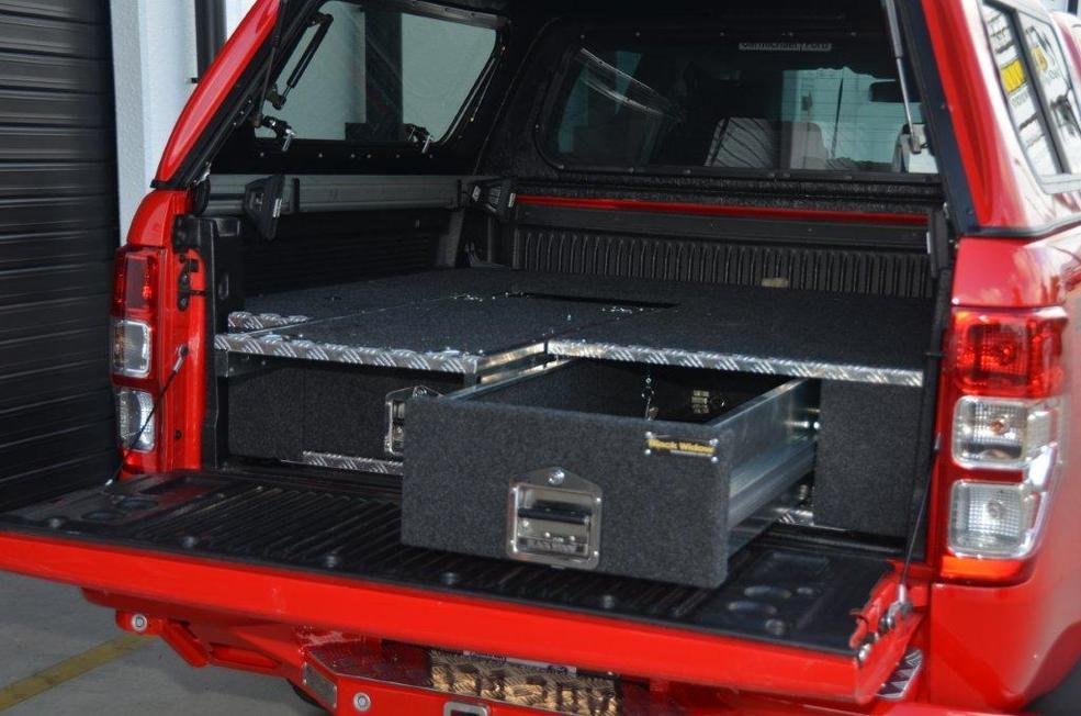 The canopy and rear storage drawer system have converted the ute in a large wagon with more useable space than the large 4x4 wagons at a significantly cheaper price. The fridge slide allows good access to the Evakool and is reliably powered by the Redarc Isolator and Optima battery.