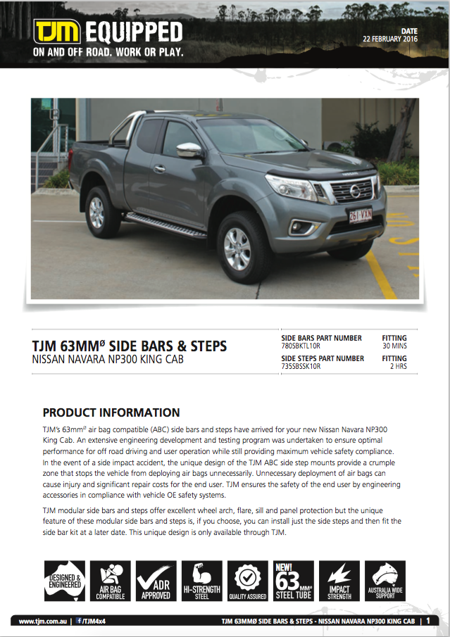 63mm Side Bars & Steps Navara NP300 King Cab
