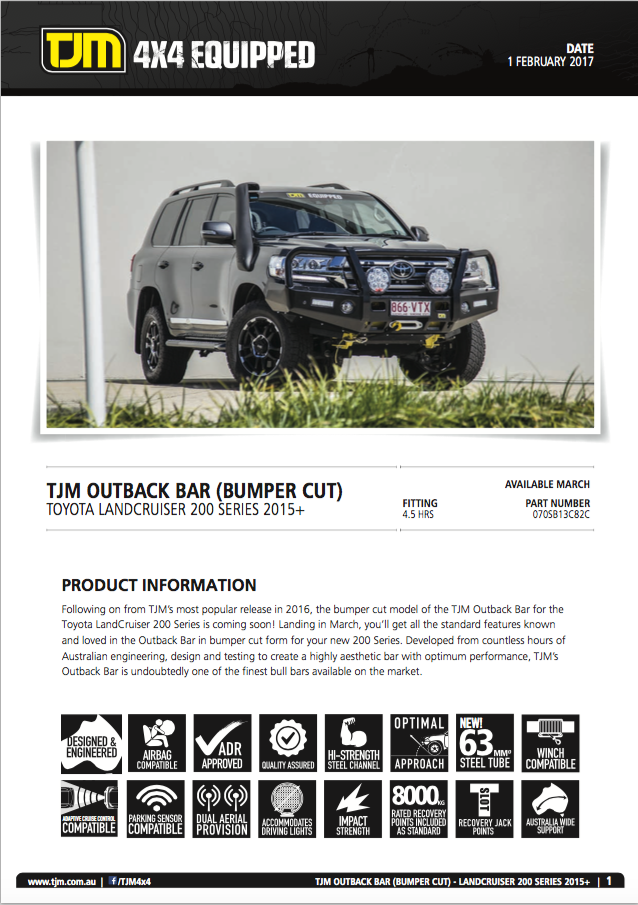 Outback Bar Bumper Cut Landcruiser 200 series 2015+