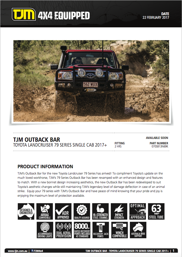 OUTBACK BAR 79 SERIES Cruiser Single Cab 2017+