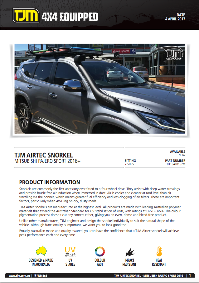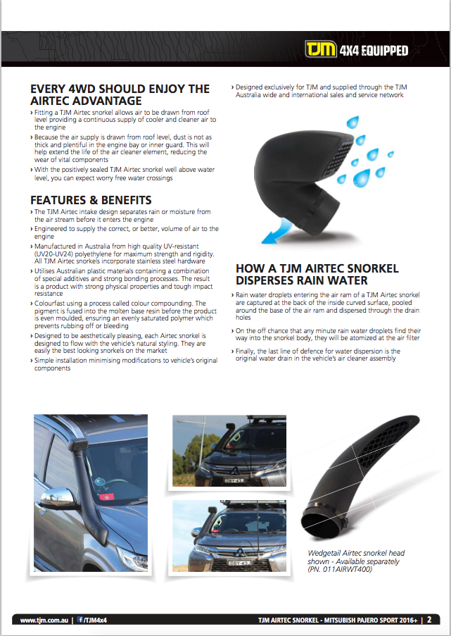 Airtec Snorkel - Mitsubishi Pajero Sport 2016+