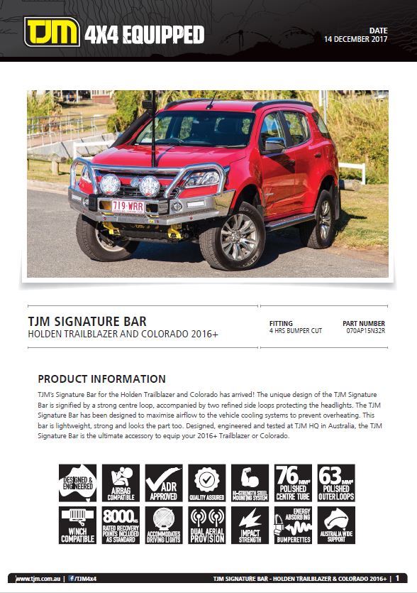 Holden Trailblazer and Colorado 2016+ Signature Bar