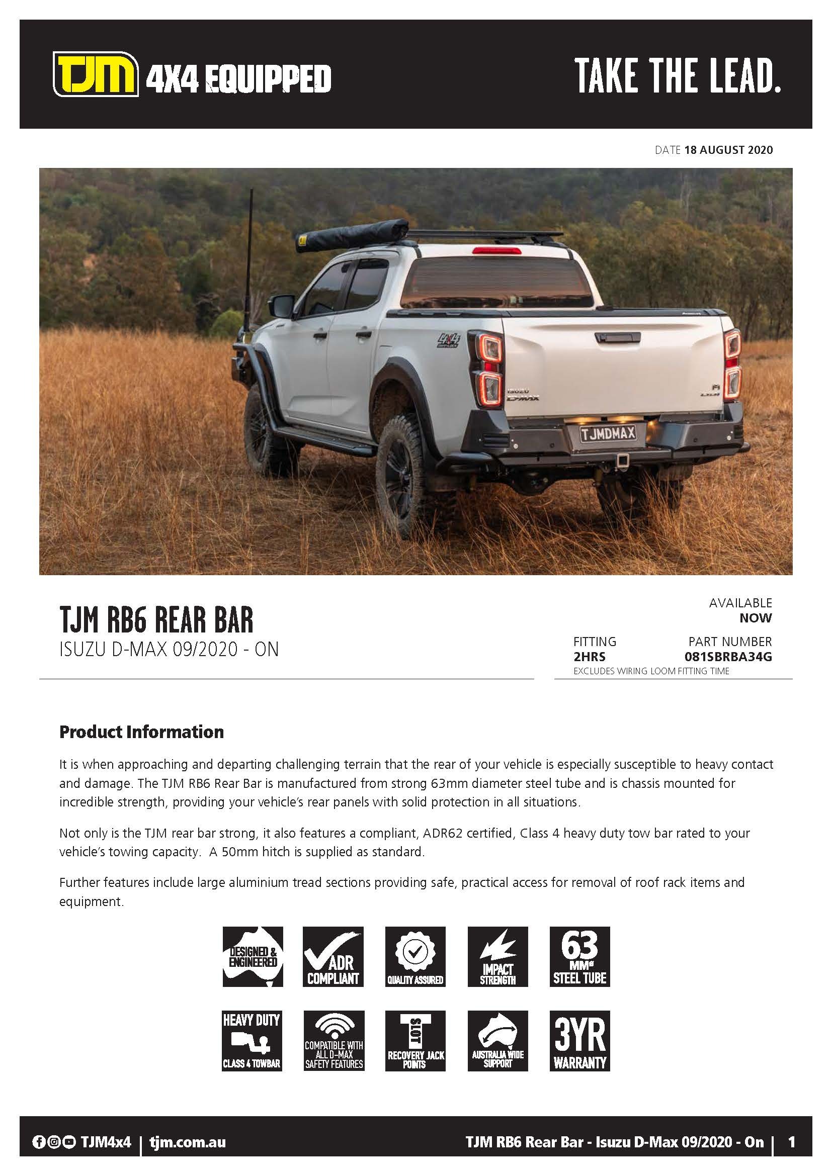 Rear Bar D-max 09/2020 on