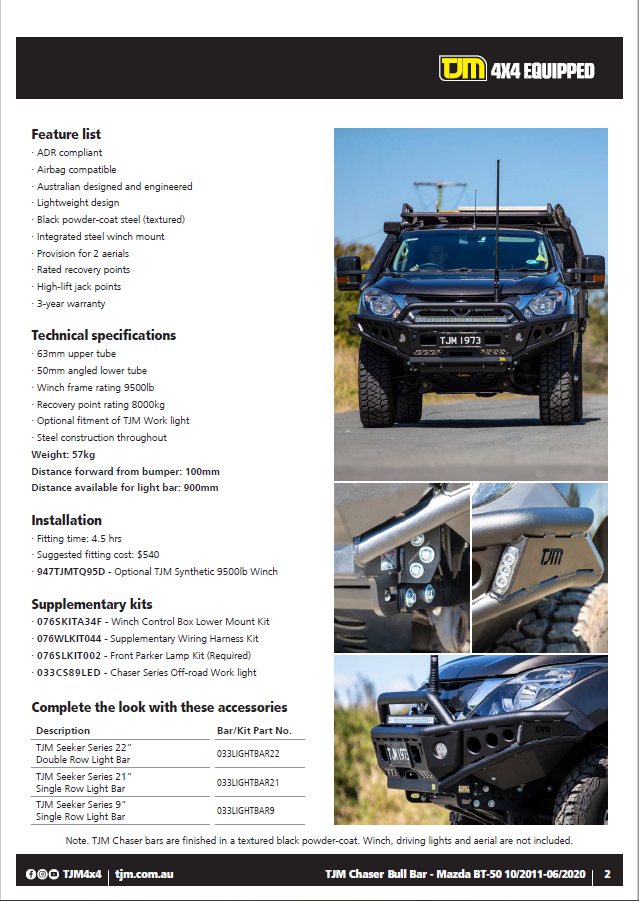 Mazda BT 50 2011 to 2020 Chaser Bar