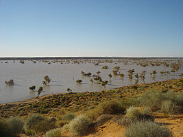 Big Red, you cannot come this far without having a run up the biggest sand dune in the Simpson. Opting for an overnight desert, bush-camp on the western side of this mighty dune, we woke to a beautiful sunrise. Low-four second gear, dropped tyre pressures (around 25 psi) and a big right boot we made it to the top of Big Red. Nothing but water as far as the eye could see on the eastern side of it thanks to Eyre creek--what a way to finish of a trip of a life time! The flooding may have stopped us doing the full Simpson Desert crossing but with a well equipped 4WD and a desire to see this beautiful part of Australia after the wet, we did it. Who said you cannot travel with young kids! We did and we had a ball and saw some amazing places and met some great people along the way. So get out, get your 4WD equipped and travel this spectacular country of ours!!!