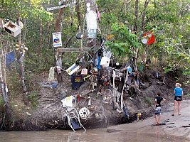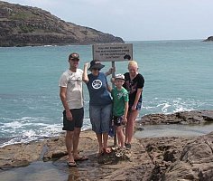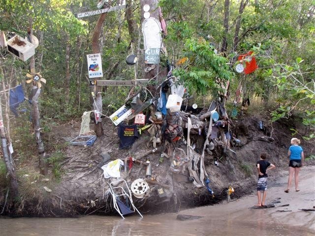 We decided to give Nolan’s a miss and headed back onto the Northern Bypass road to the Jardine River. From there we trekked onto Bamaga to pick up a few needs and wants...mostly wants, and headed on again, this time to Punsand Bay to set up camp for a few days - Great camping area. After a decent night’s sleep we went down to the Croc tent to meet up with a fellow named Paul who took us on a tour of the area. High tide killed our idea of heading out to Somerset Falls and Nanthau Beach so we headed to the Tip instead. Therese and I were able to cross seeing the northern-most tip of Aus off our bucket lists, the kids however were less impressed, clearly expecting more than a sign and a good view. We know they’ll appreciate it in time and we’ll have the happy snap to prove it.