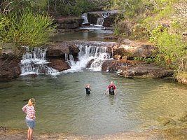 The next morning we went for a trek down to both the falls for a swim. It was near on impossible to get the kids back in the car again. As far as they were concerned this was the place to be and I’ve got to say, it is a stunning spot. After much coaxing and convincing we were finally able to get moving again. Straight out of camp we crossed Canal Creek; sandy bottomed and some deep holes again. There are still some old Telegraph poles standing along the way, adding a nice touch of history and a good excuse for a lesson for the kids.